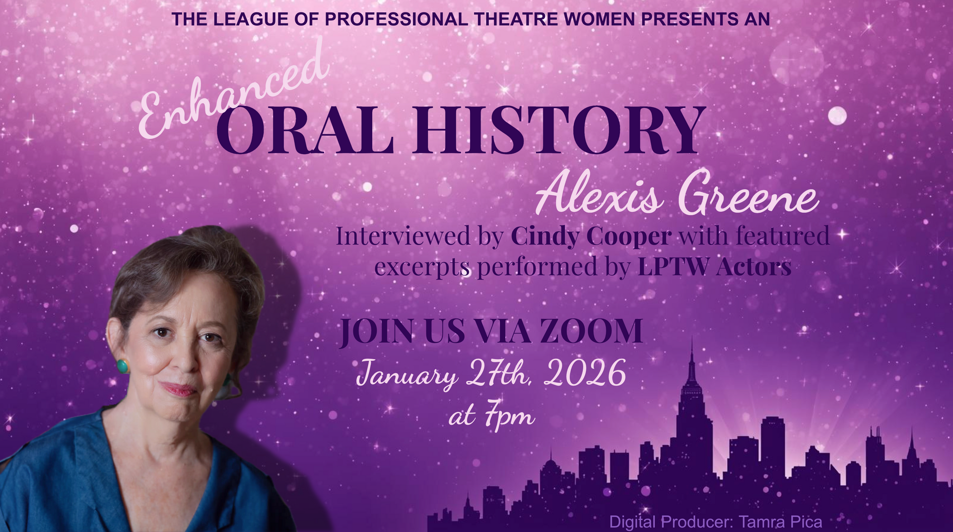 Developed in collaboration with Cindy Cooper and Ludovica Villar-Hauser, the program will feature curated excerpts from Alexis Greene's books, performed by LPTW actors. These readings will be thoughtfully woven throughout the Oral History interview.